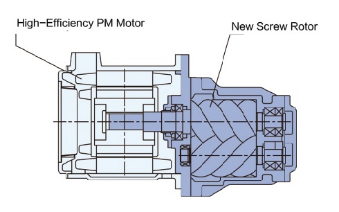 永磁电机与压缩机主机采用内嵌式一体轴直联结构,结构更加紧凑,传动效率100%。 4、高效的永磁电机