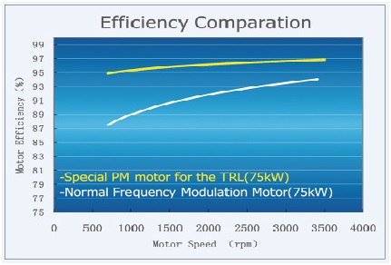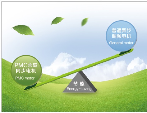 (1)、高效永磁电机(PM电机),与普通调频主机相比,节能效果更卓越。