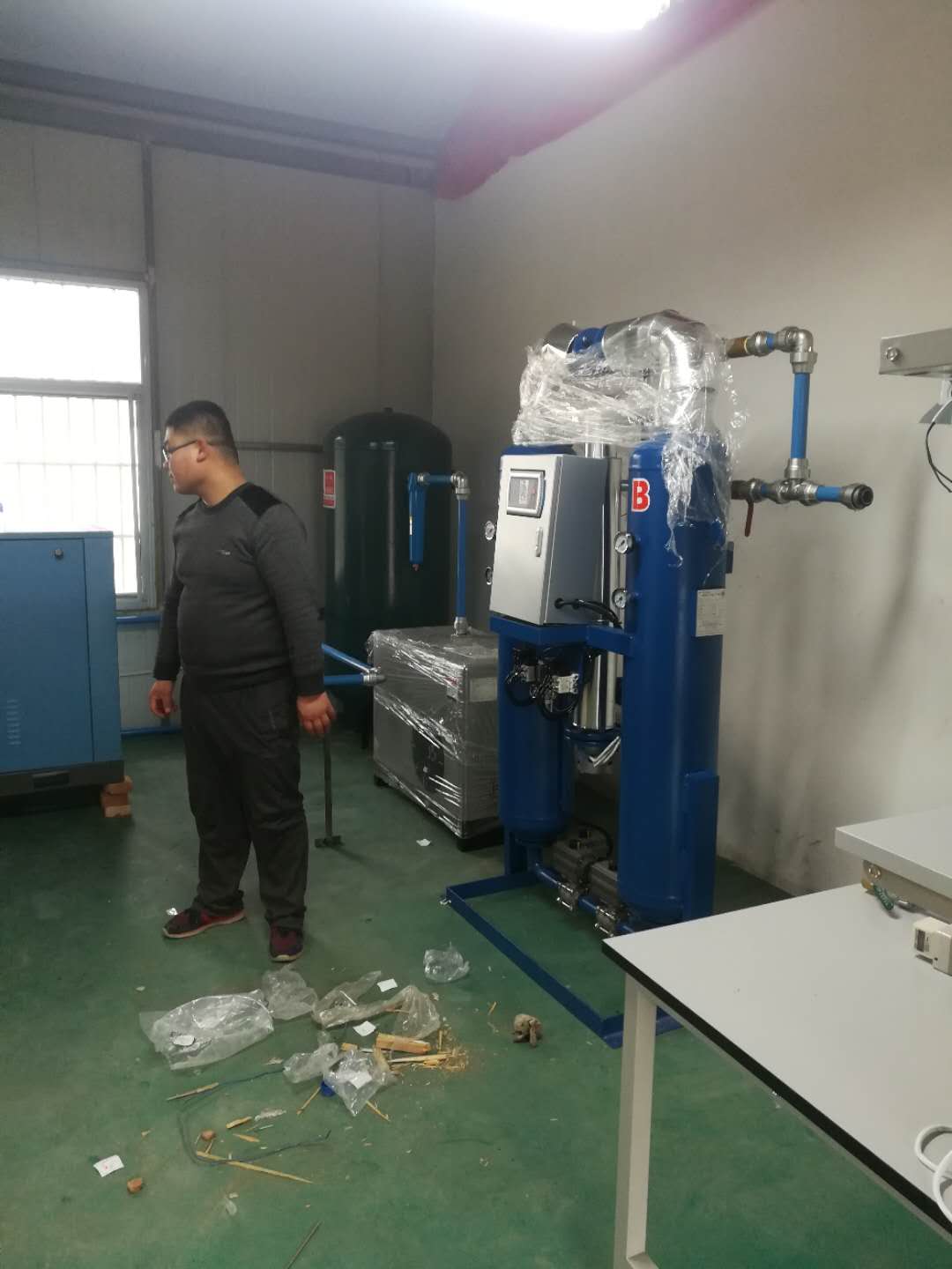 无热吸附式干燥机 一、无热吸附式干燥机是利用吸附剂有选择性吸附的特性。吸附压缩空气中的水分,以达到干燥的目的。由于吸附剂到定时间将选到饱和平衡,需要用干燥气体进行再生恢复吸附干燥能力。 无热吸附式干燥机是采用双塔烃压吸附,无热再生的工艺,其工作原理是一个吸附塔在工作压力下进行吸附干燥,同时另一个吸附利用一部分自身干燥气体并降压至接近大气压力,作为再生气体进行再生,以固定的切换时间进行双塔切换,从而连续提供干燥气体 二、无热吸附式干燥机产品特点 采用大容量设计,保证装置出口有稳定的出口露点,能适应吸附剂老化,操作负荷变化; 主要关健部件选用国内外知外品牌,保证连续可靠运行; 整体组装出厂,从而使装置安装简便; 采用PIC微处理控制技术,使得装置具有先进性。